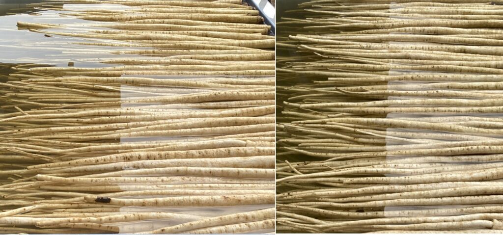 ごぼうの旬の時期、7月から10月の期間に収穫、冷凍加工しています。